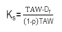 Where taw is the Total Available Water in the root zone (mm), Dr is the humidity depletion in the root zone (mm) and “p” is the fraction of the taw that the crop can extract without suffering water stress (threshold).