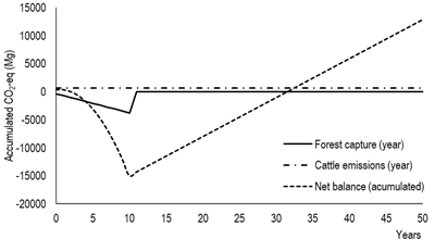 Greenhouse gasses potential offset by forest species and CO2 balance in integrated forestry-livestock systems in Uruguay